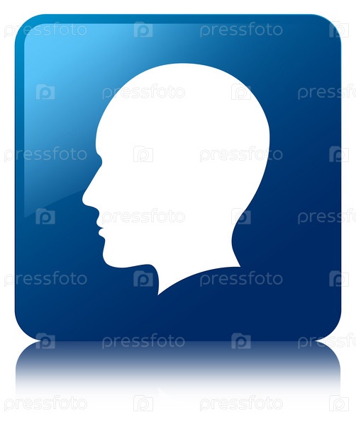 Икона головы мужского лица синяя квадратная кнопка