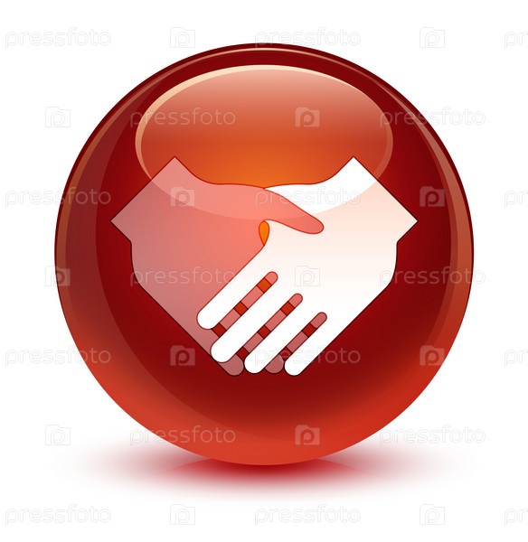 Икона рукопожатия стеклянная коричневая круглая кнопка