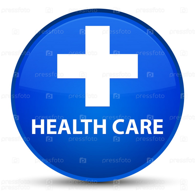 Здравоохранение (плюс знак) специальная голубая круглая кнопка