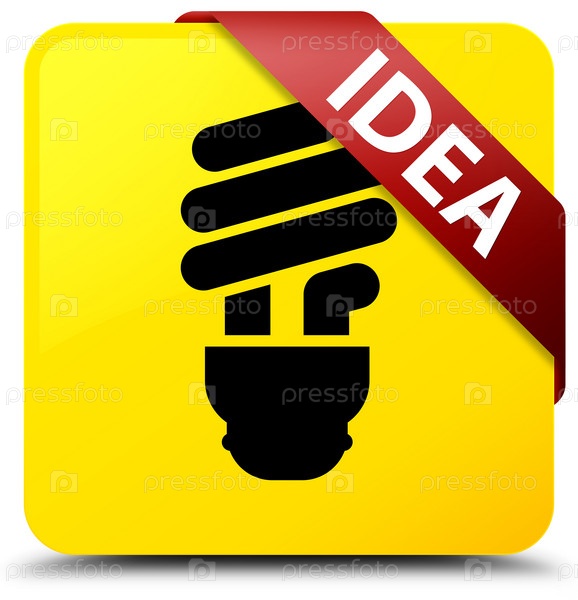 Идея (икона лампочки) желтая квадратная кнопка красная лента в углу