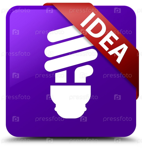 Идея (икона лампочки) фиолетовая квадратная кнопка красная лента в углу