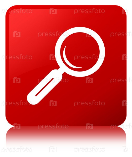 Икона увеличительного стекла красная квадратная кнопка