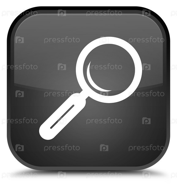 Икона увеличительного стекла специальная черная квадратная кнопка