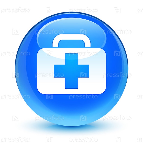 Икона медицинской сумки стеклянный синий голубой круглый кнопка