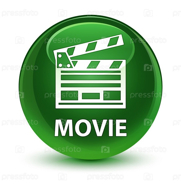 Movie (cinema clip icon) стеклянная мягкая зеленая круглая кнопка