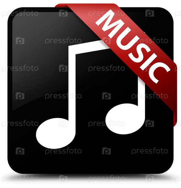 Музыка (икона мелодии) черная квадратная кнопка красная лента в углу