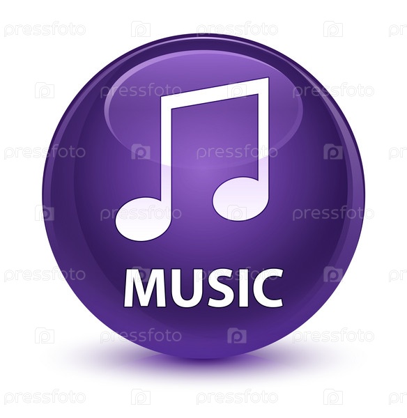 Музыка (икона мелодии) стеклянная фиолетовая круглая кнопка
