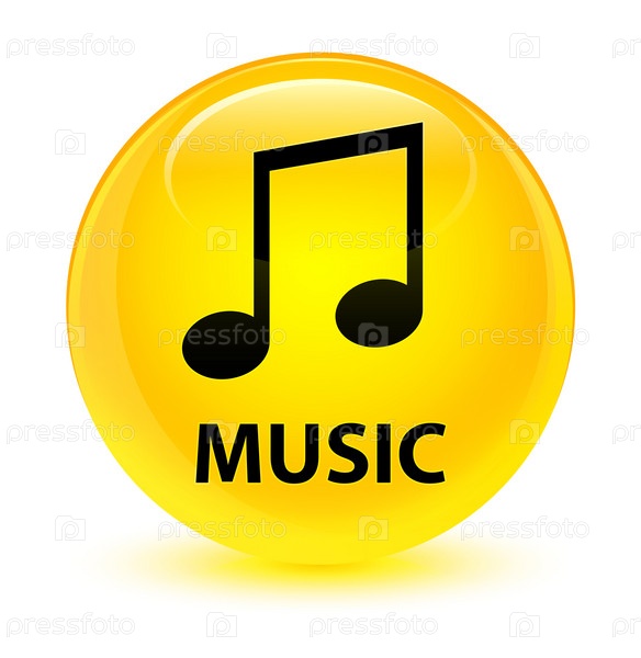 Музыка (икона мелодии) стеклянная желтая круглая кнопка