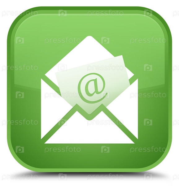 Иконка электронной почты для рассылки новостей специальная мягкая зеленая квадратная кнопка