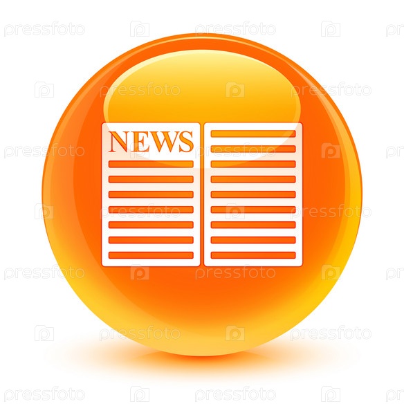 Икона газеты стеклянная оранжевая круглая кнопка
