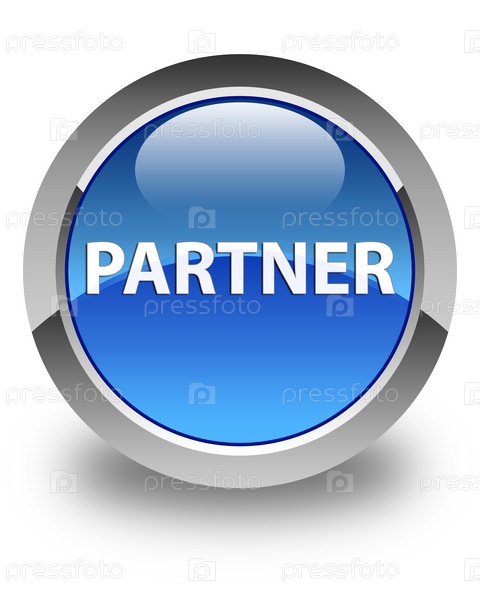 Партнер глянцевая голубая круглая кнопка