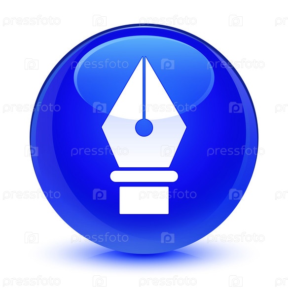 Икона карандаша стеклянная голубая круглая кнопка