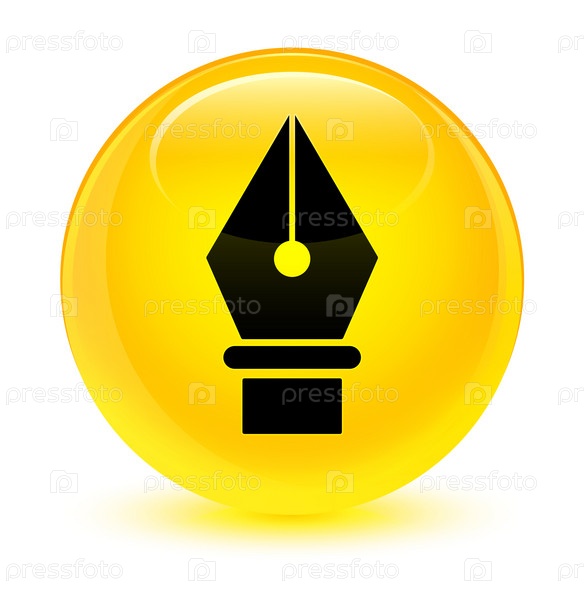 Икона карандаша стеклянная желтая круглая кнопка