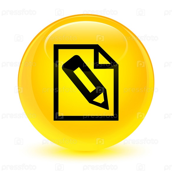 Карандаш в иконе страницы стеклянная желтая круглая кнопка