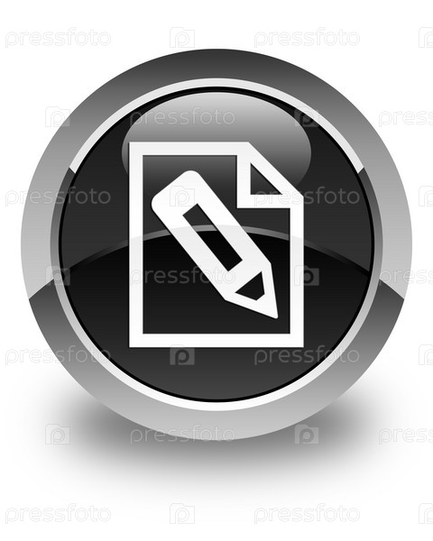 Карандаш в иконе страницы глянцевая черная круглая кнопка