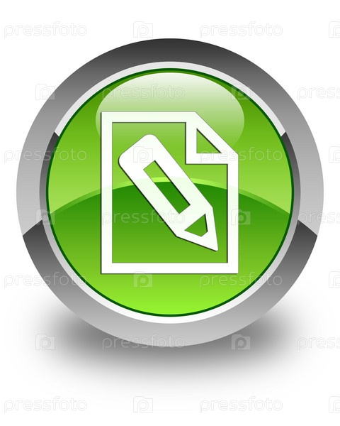 Карандаш в иконе страницы глянцевая зеленая круглая кнопка