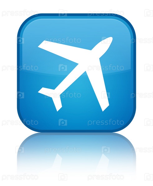 Иконка самолета специальный синий синеватый квадратный кнопка