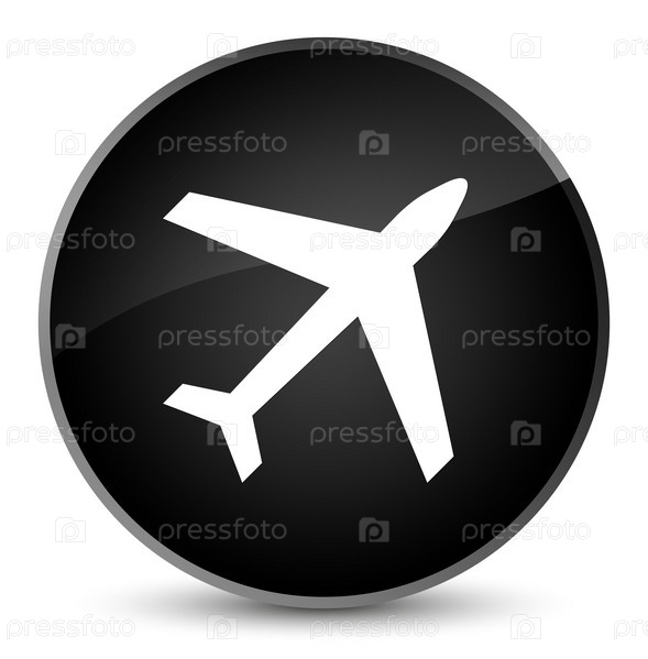 Икона самолета элегантная черная круглая кнопка