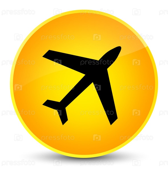 Икона самолета элегантная желтая круглая кнопка
