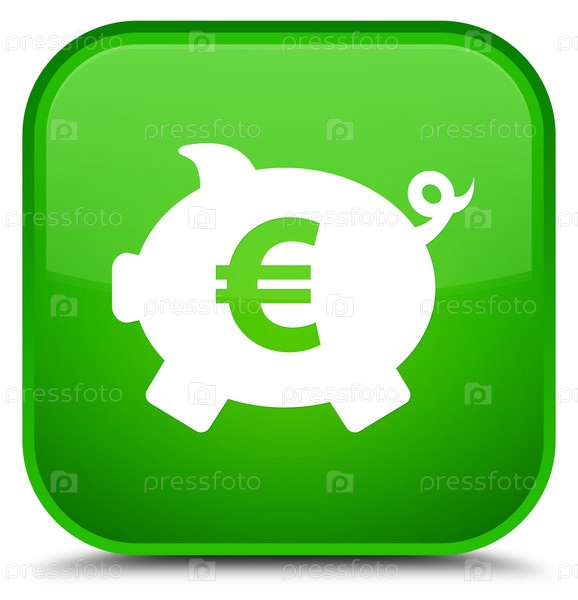 Пигги-банк икона знака евро специальный зеленый квадратный кнопка