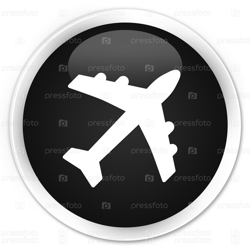 Иконка самолета премиум черный круглый кнопка Самолет