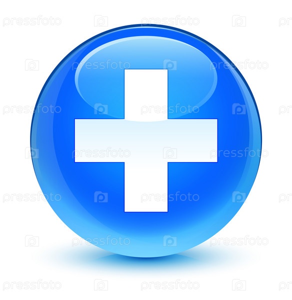 Иконка стеклянный синий синего цвета плюс круглая кнопка