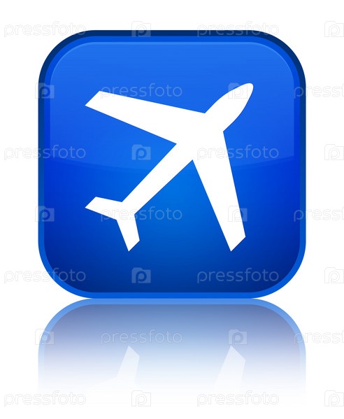 Икона самолета специальная синяя квадратная кнопка