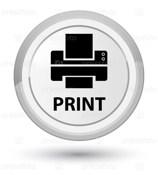 Печать (икона принтера) первичная белая круглая кнопка