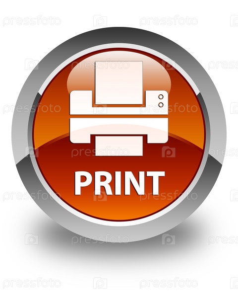Печать (икона принтера) глянцевая коричневая круглая кнопка