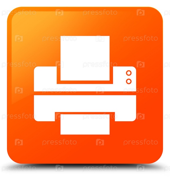 Икона принтера оранжевая квадратная кнопка