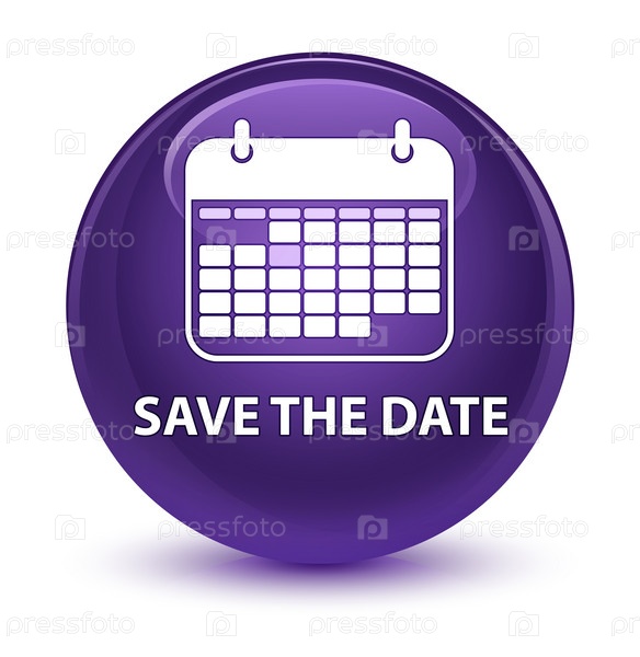 Сохранить дату стеклянная фиолетовая круглая кнопка