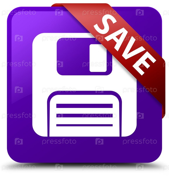Сохранить (икона дискеты) фиолетовая квадратная кнопка красная лента в углу