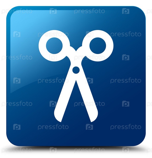 Икона ножницы синяя квадратная кнопка