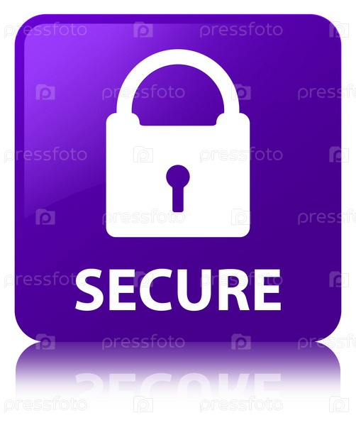 Безопасно (икона замка) фиолетовая квадратная кнопка