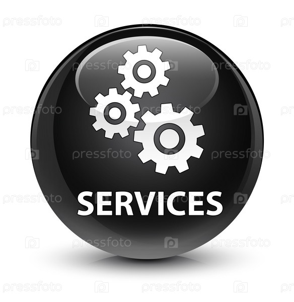 Услуги (икона передач) стеклянная черная круглая кнопка