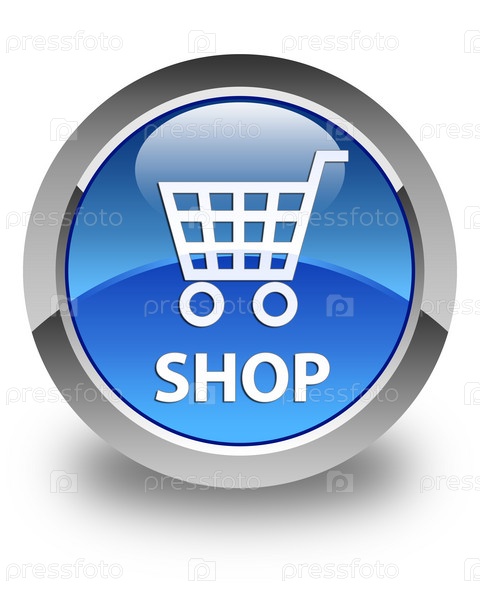 Магазин с глянцевой синей круглой кнопкой