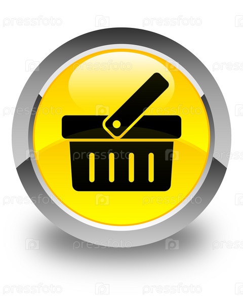 Икона корзины покупок глянцевая желтая круглая кнопка