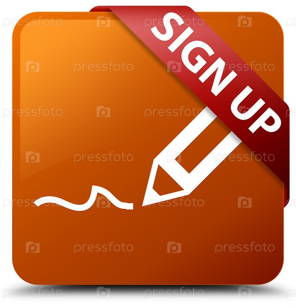 Зарегистрируйтесь коричневая квадратная кнопка красная лента в углу