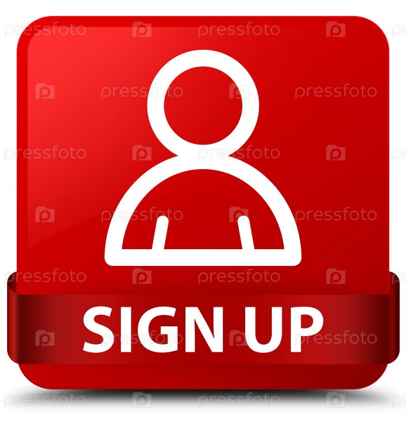 Зарегистрироваться (икона члена) красная квадратная кнопка Красная лента посередине