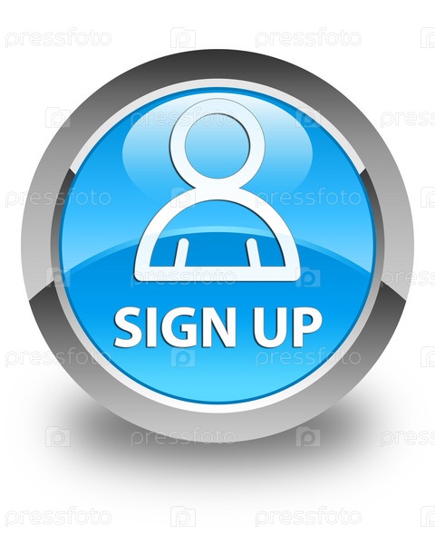 Зарегистрироваться (икона члена) блестящая синяя цианская голубая круглая кнопка