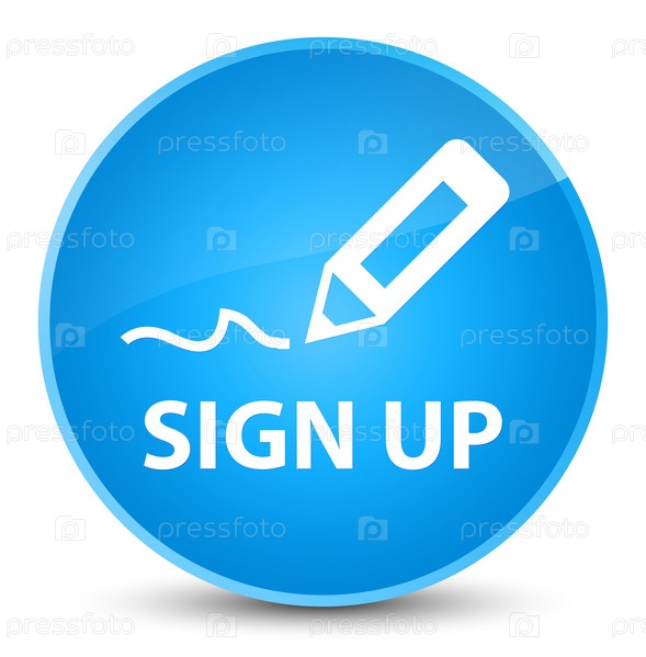Зарегистрируйтесь на элегантной циано-синей круглой кнопке