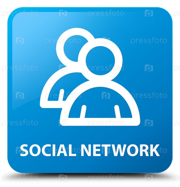 Социальная сеть (икона группы) цыановый синий квадратный кнопка