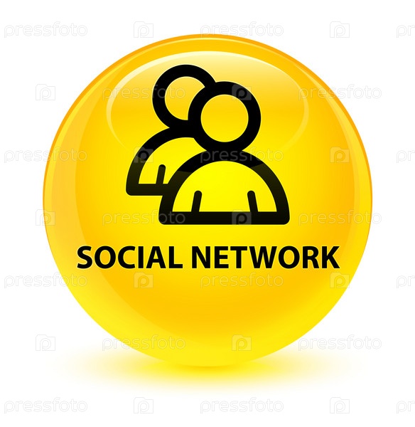 Социальная сеть (икона группы) стеклянный желтый круглый кнопка