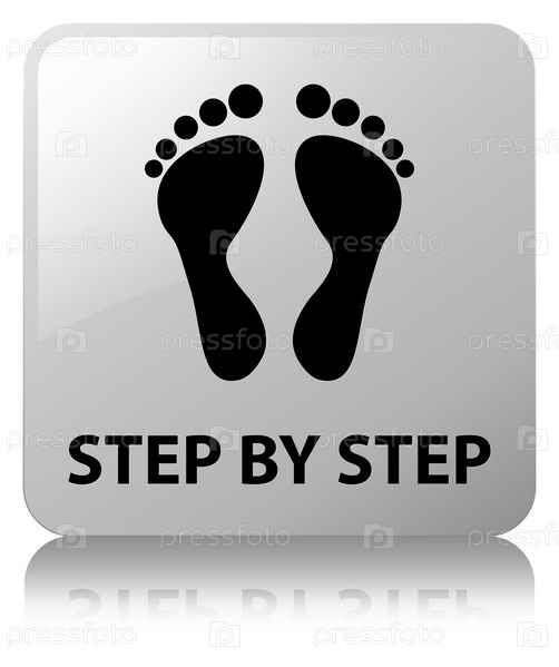 Шаг за шагом (икона отпечатков) белая квадратная кнопка