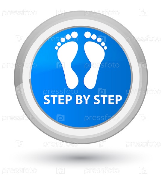 Шаг за шагом (икона отпечатков) prime cyan синий круглый кнопка