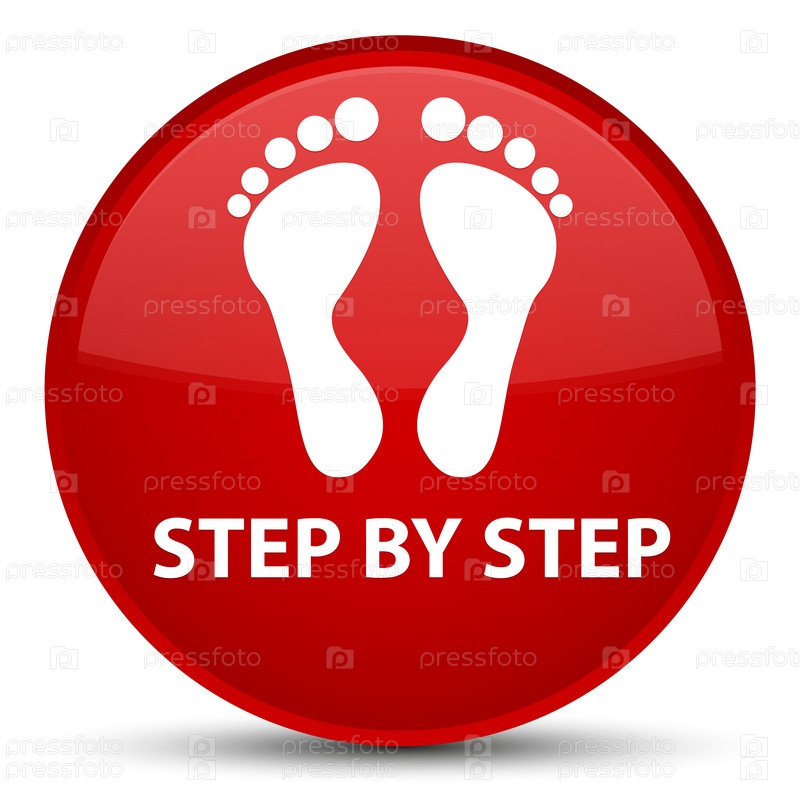 Шаг за шагом (икона отпечатков) специальная красная круглая кнопка