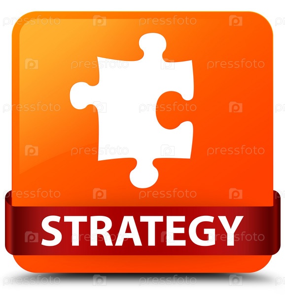Стратегия (икона головоломки) оранжевая квадратная кнопка красная лента посередине