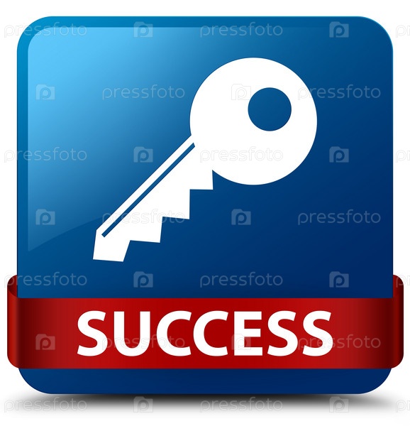 Успех (икона ключа) синяя квадратная кнопка красная лента посередине
