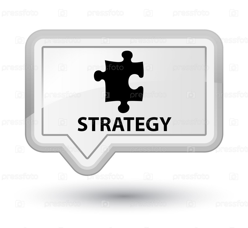 Стратегия (икона головоломки) первичная белая баннерная кнопка
