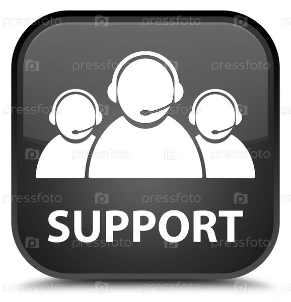 Поддержка (икона команды по обслуживанию клиентов) специальная черная квадратная кнопка
